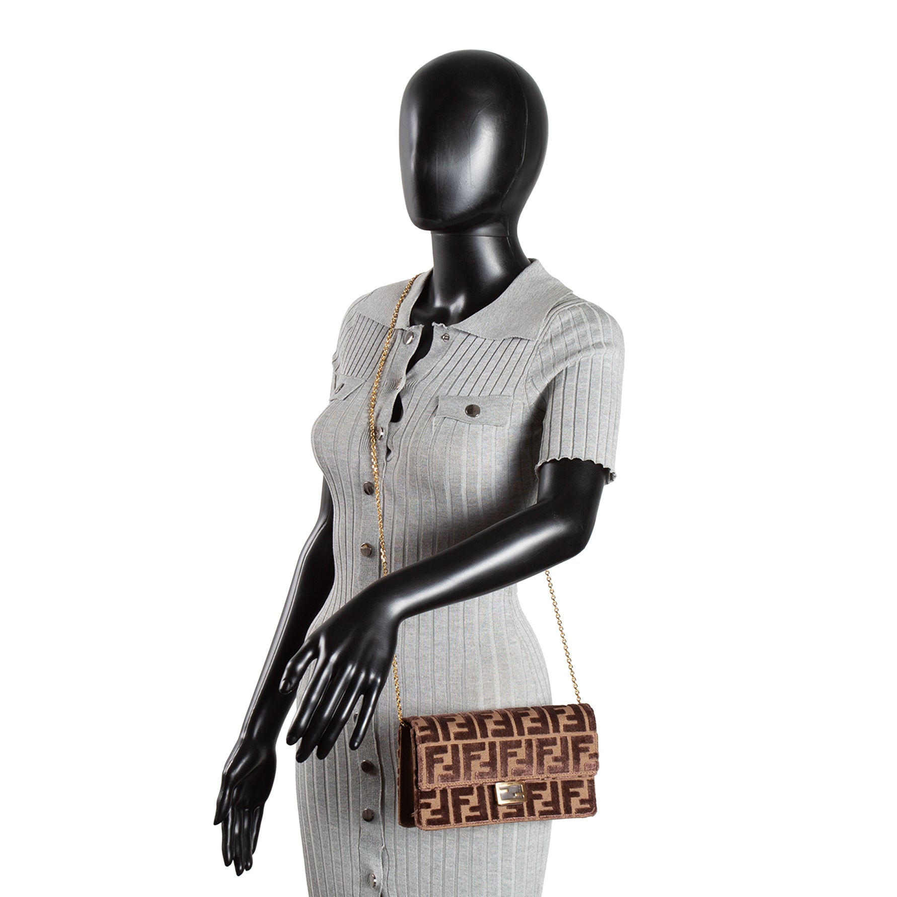 FENDI Jacquard FF Velvet Wallet on Chain