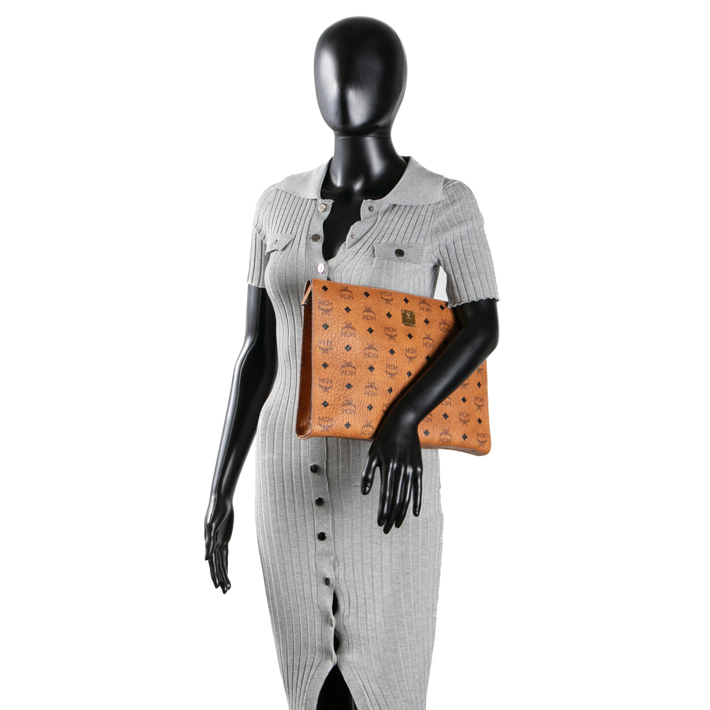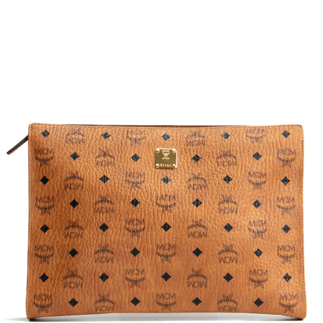 MCM Visetos Zip Wallet on Strap - Cognac