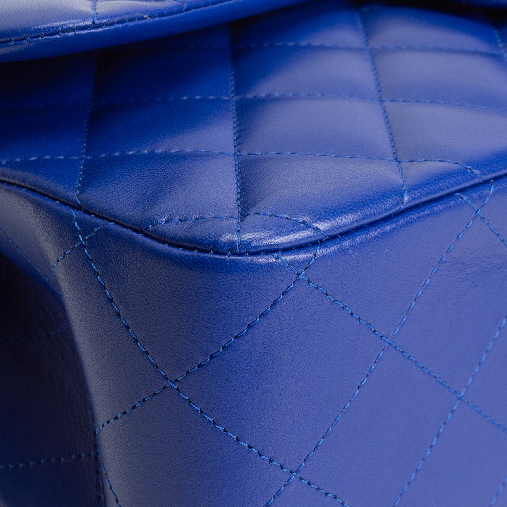 • Blue Quilted Lambskin Leather