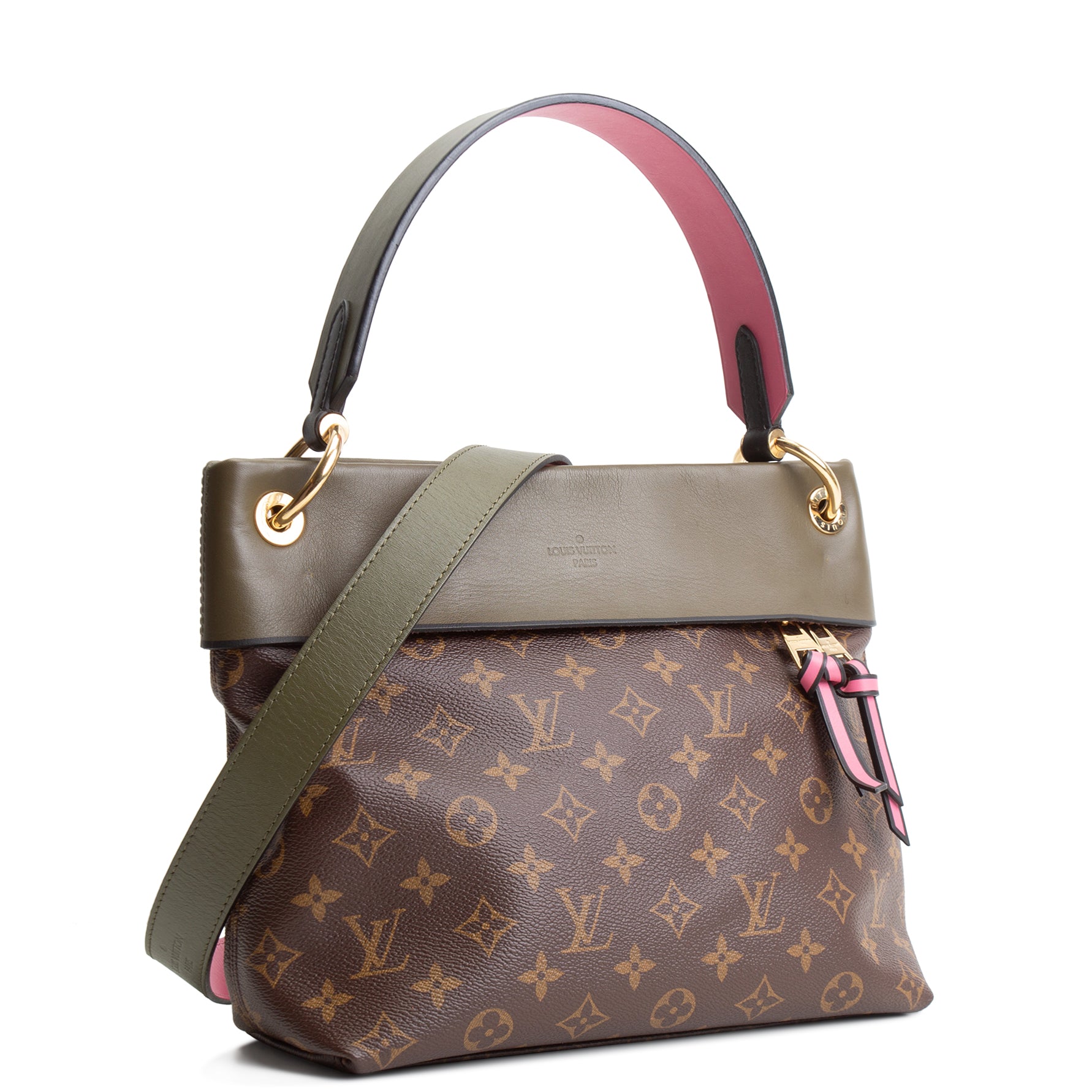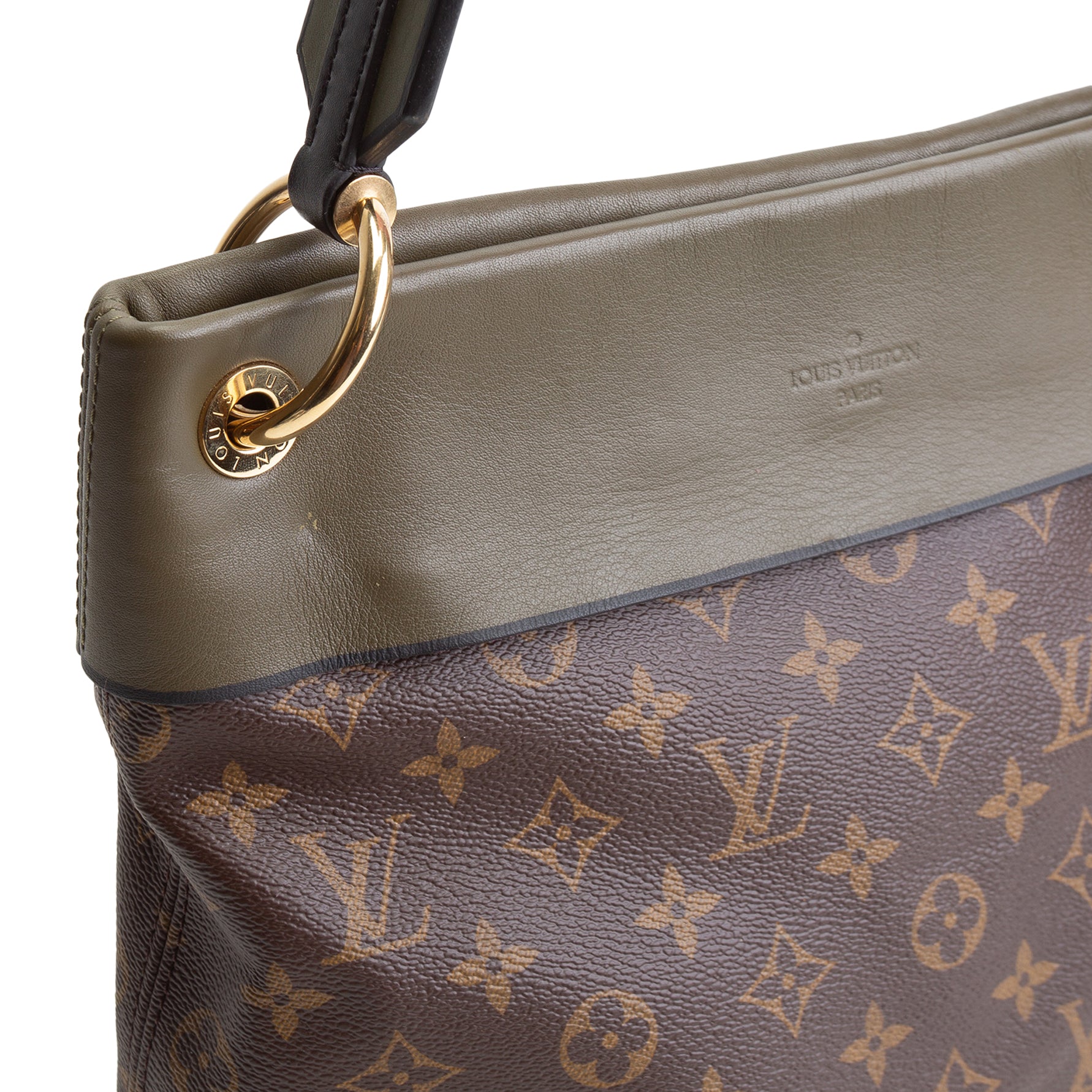 • Brown Monogram Coated Canvas w/ Green Khaki Leather Trim