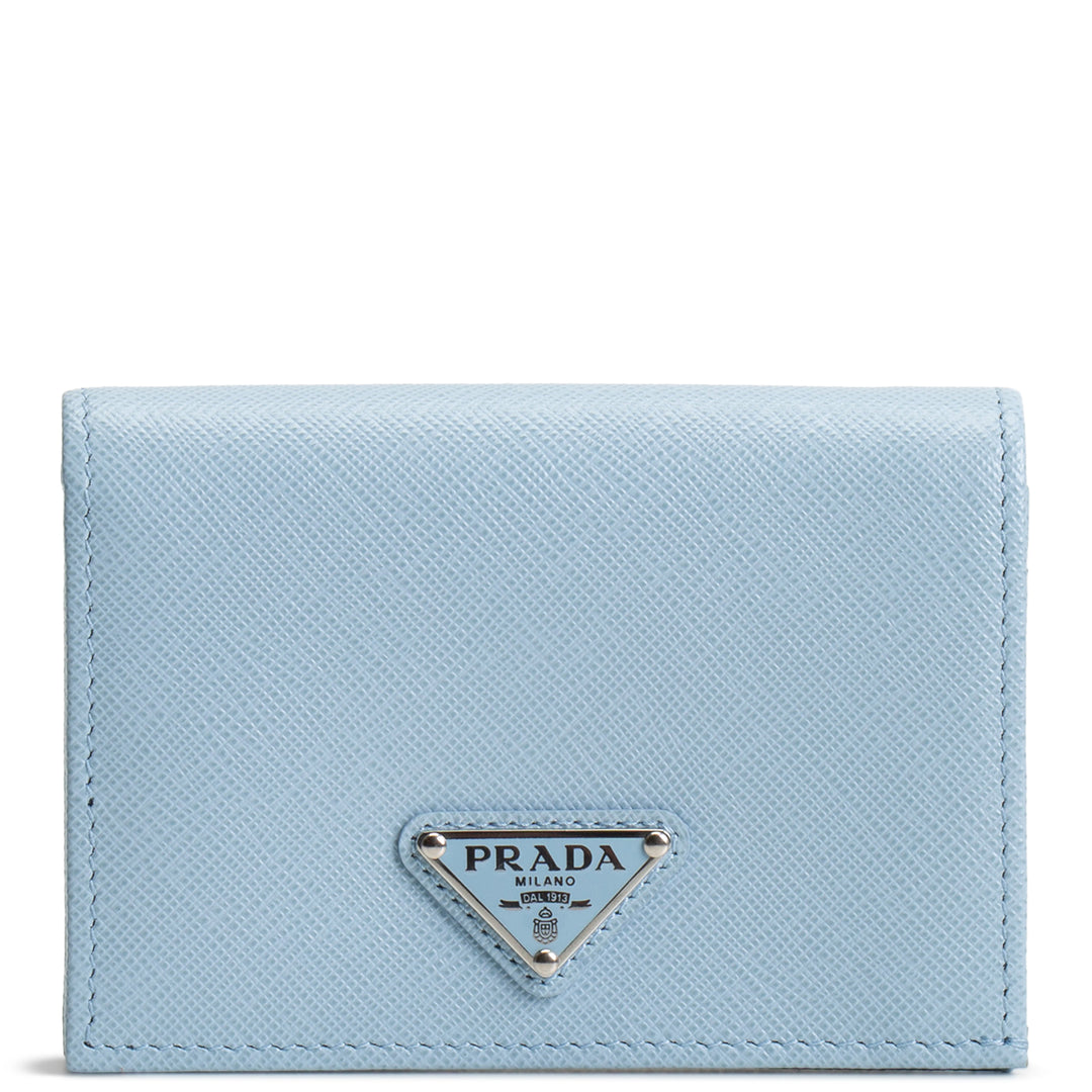 PRADA Saffiano Lux Leather Compact Wallet - Baby Blue