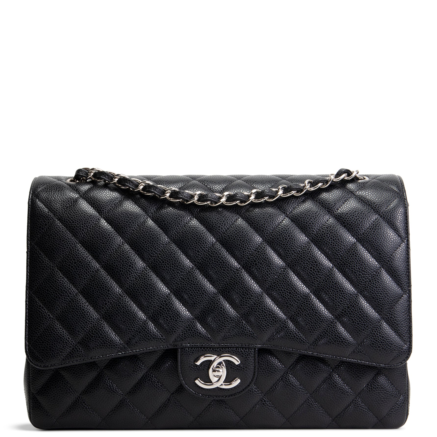 CHANEL Classic Caviar Double Flap Maxi Bag - Black