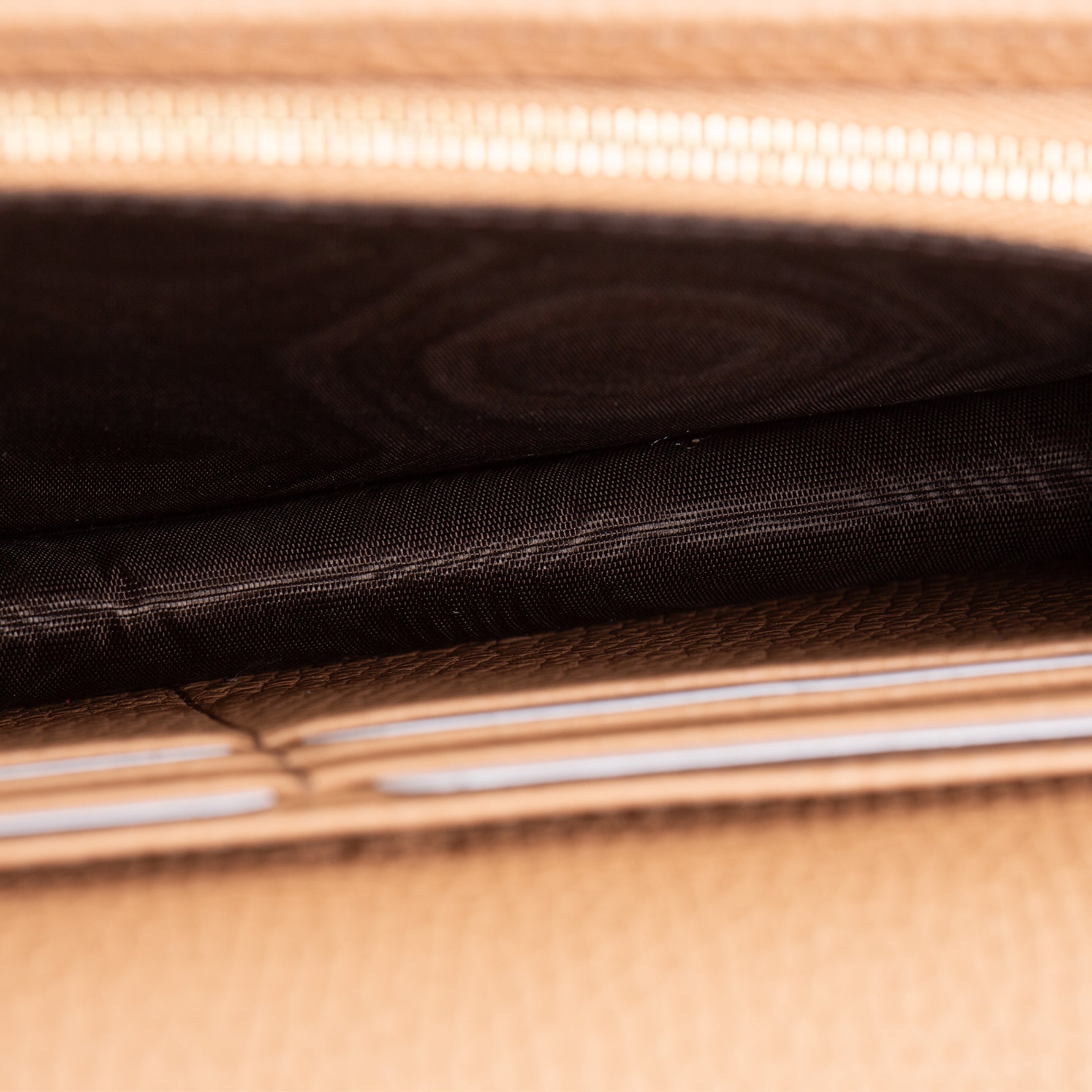 • Nude Leather & Black Grosgrain Interior Lining