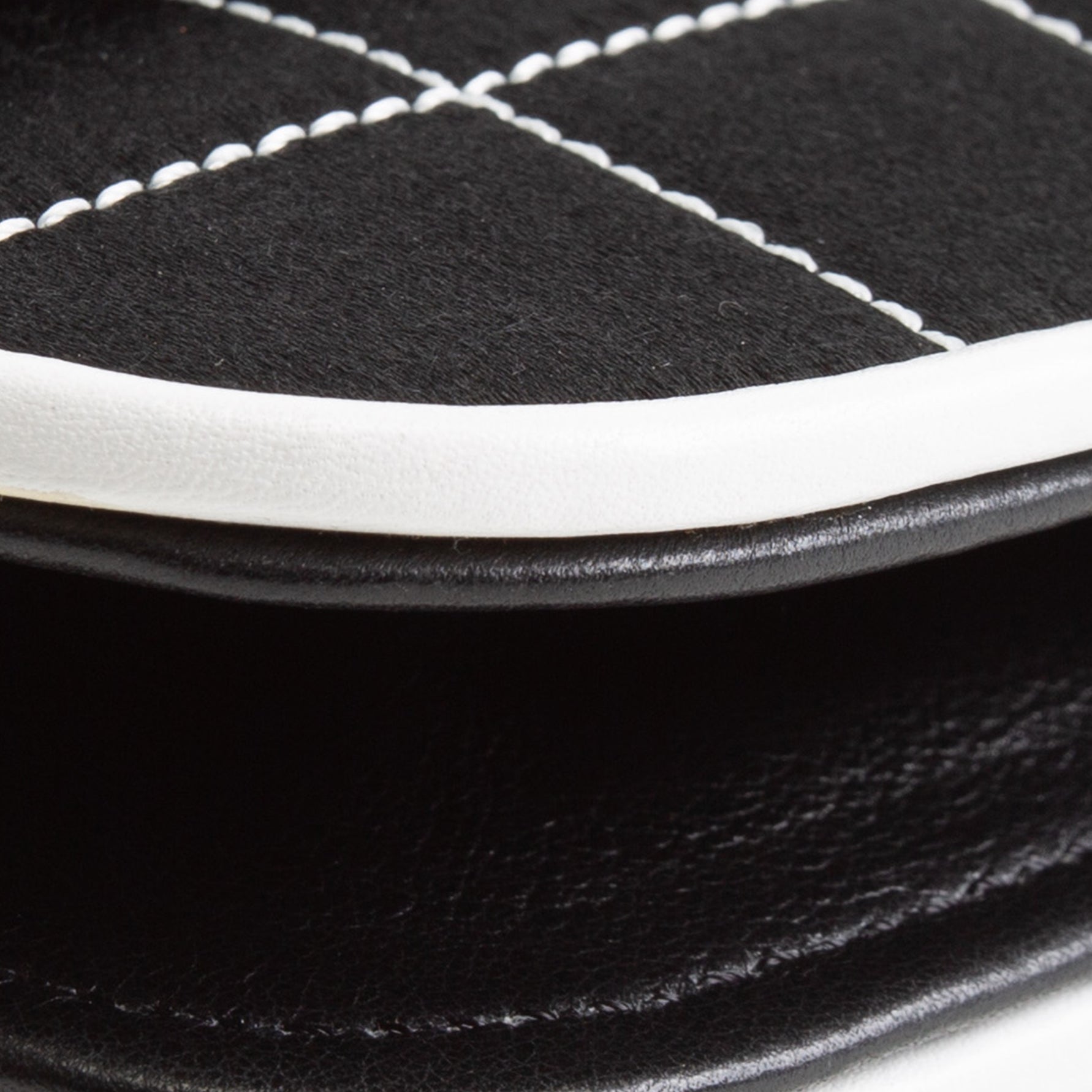 • Black Satin w/ White Stitching & White Leather Trim