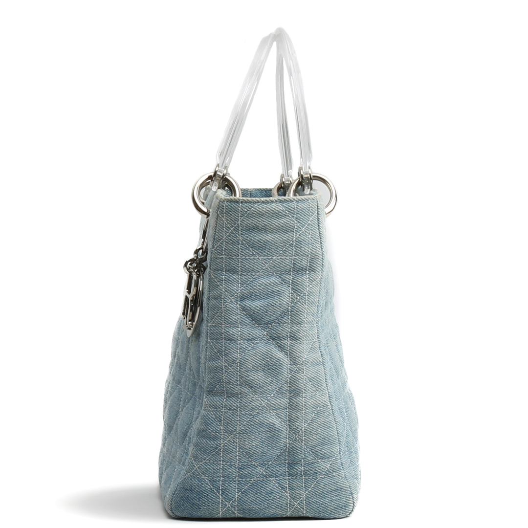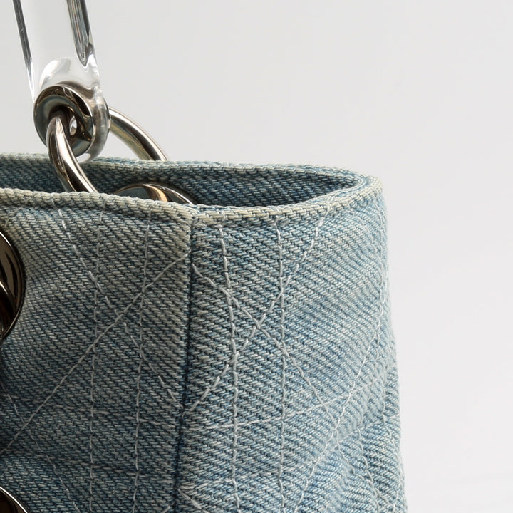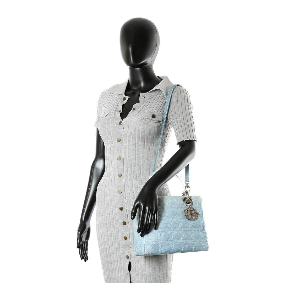DIOR Vintage Medium Lady Dior w/Strap - Denim Cannage
