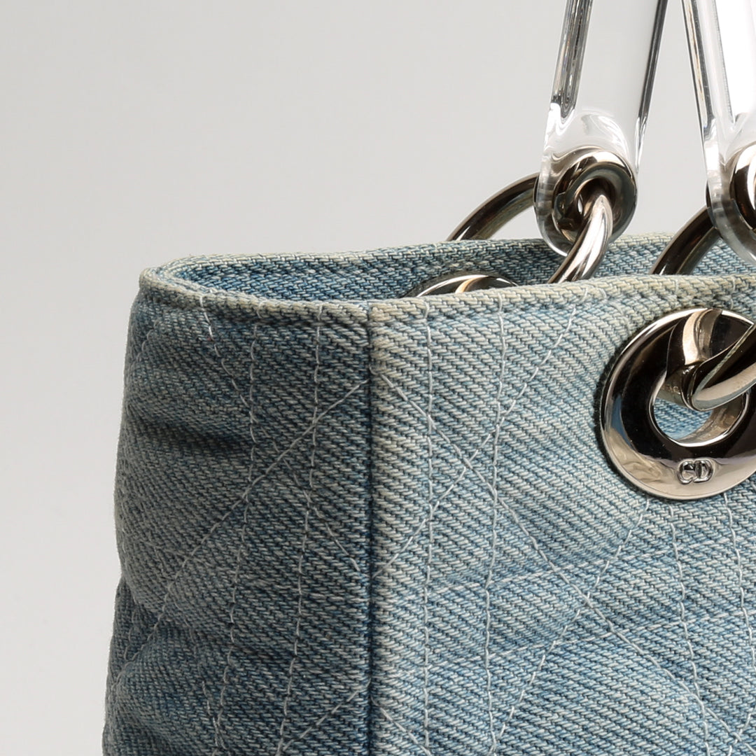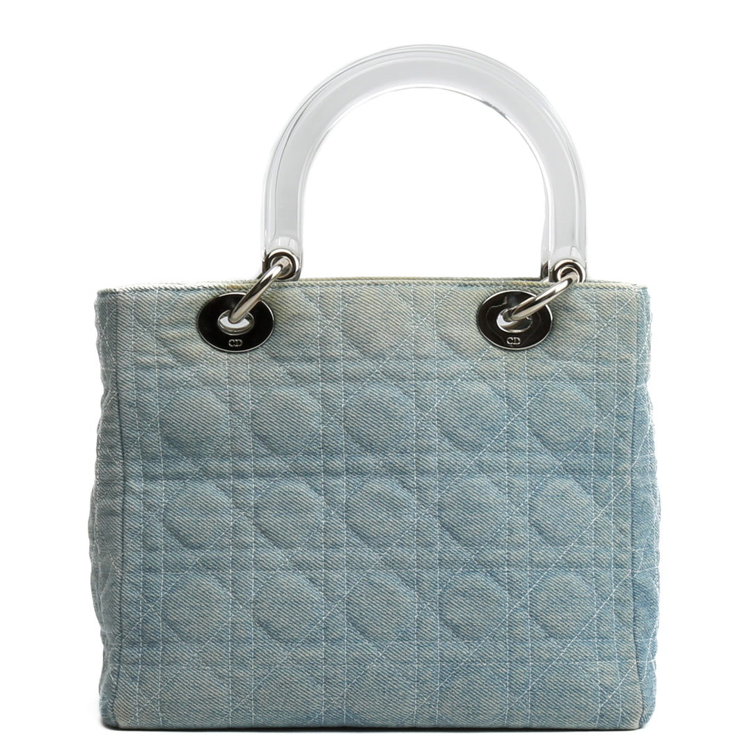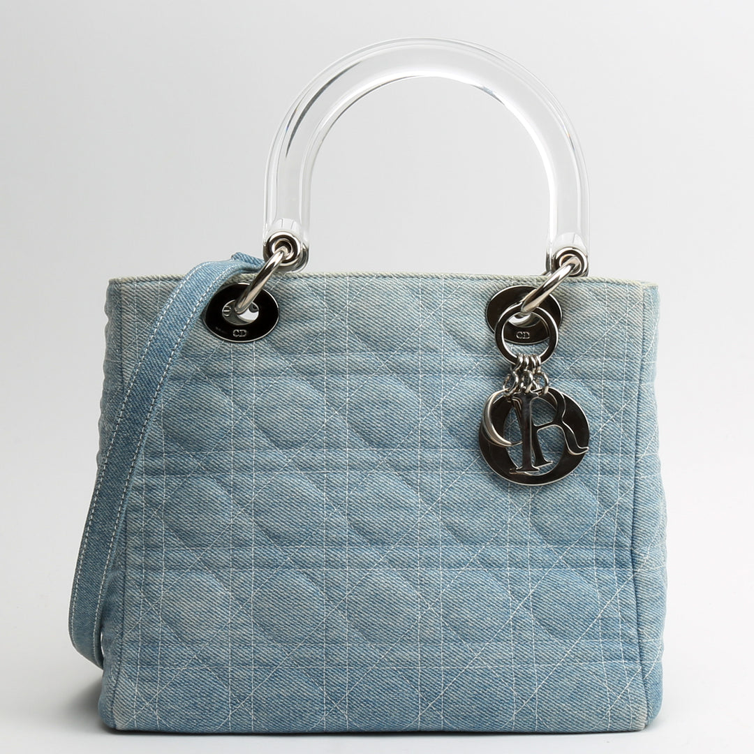 DIOR Vintage Medium Lady Dior w/Strap - Denim Cannage