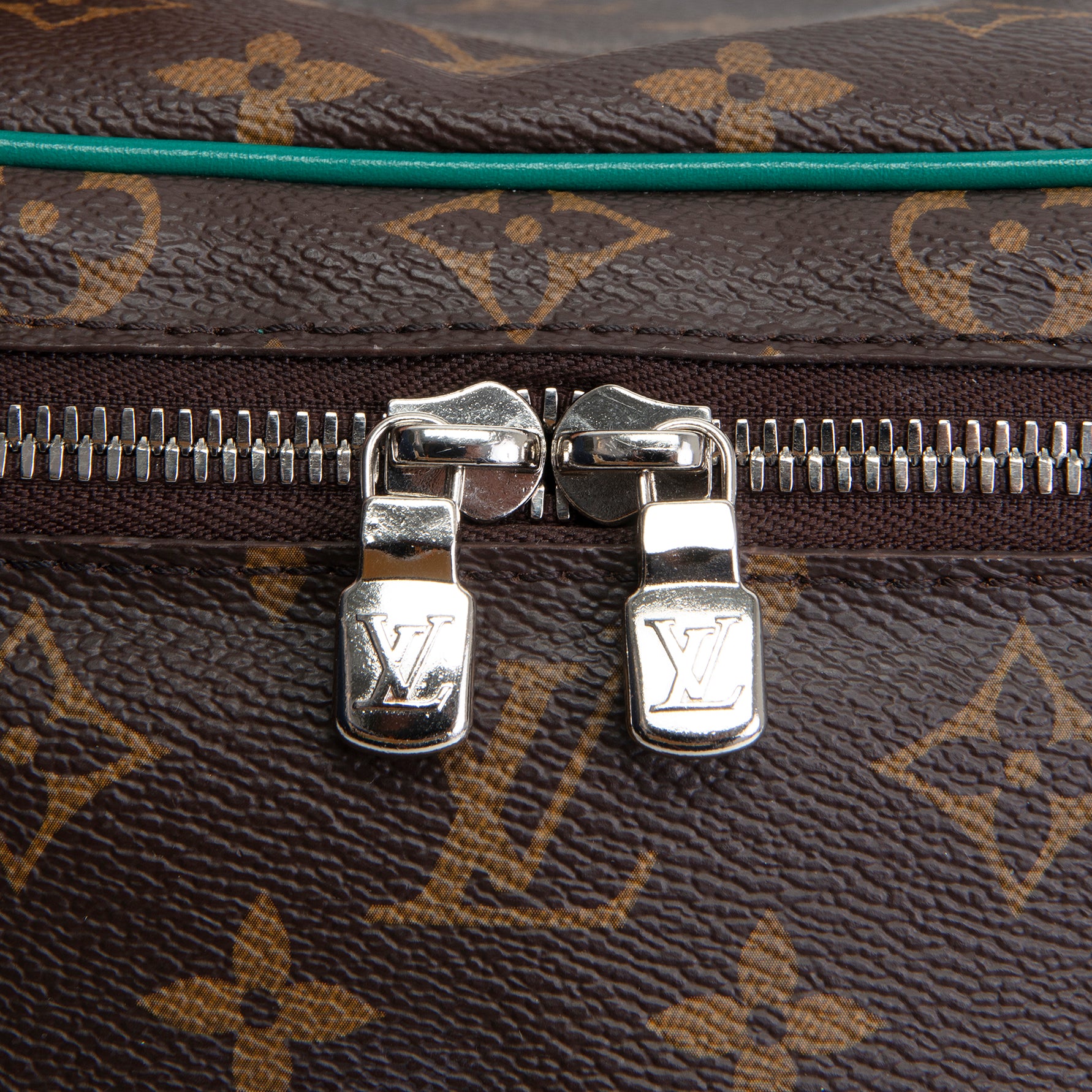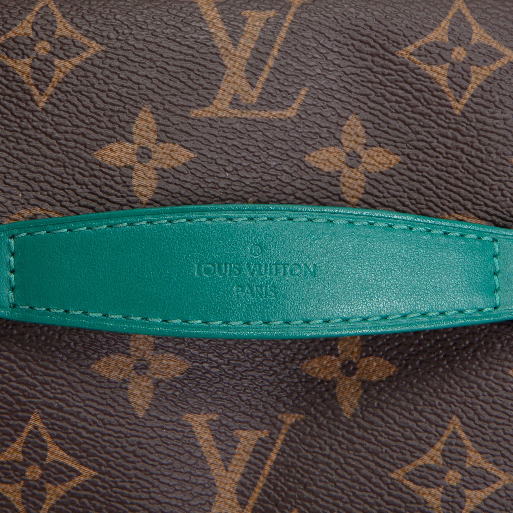 • Brown Monogram Coated Canvas with Borneo Green Calfskin Leather Trim