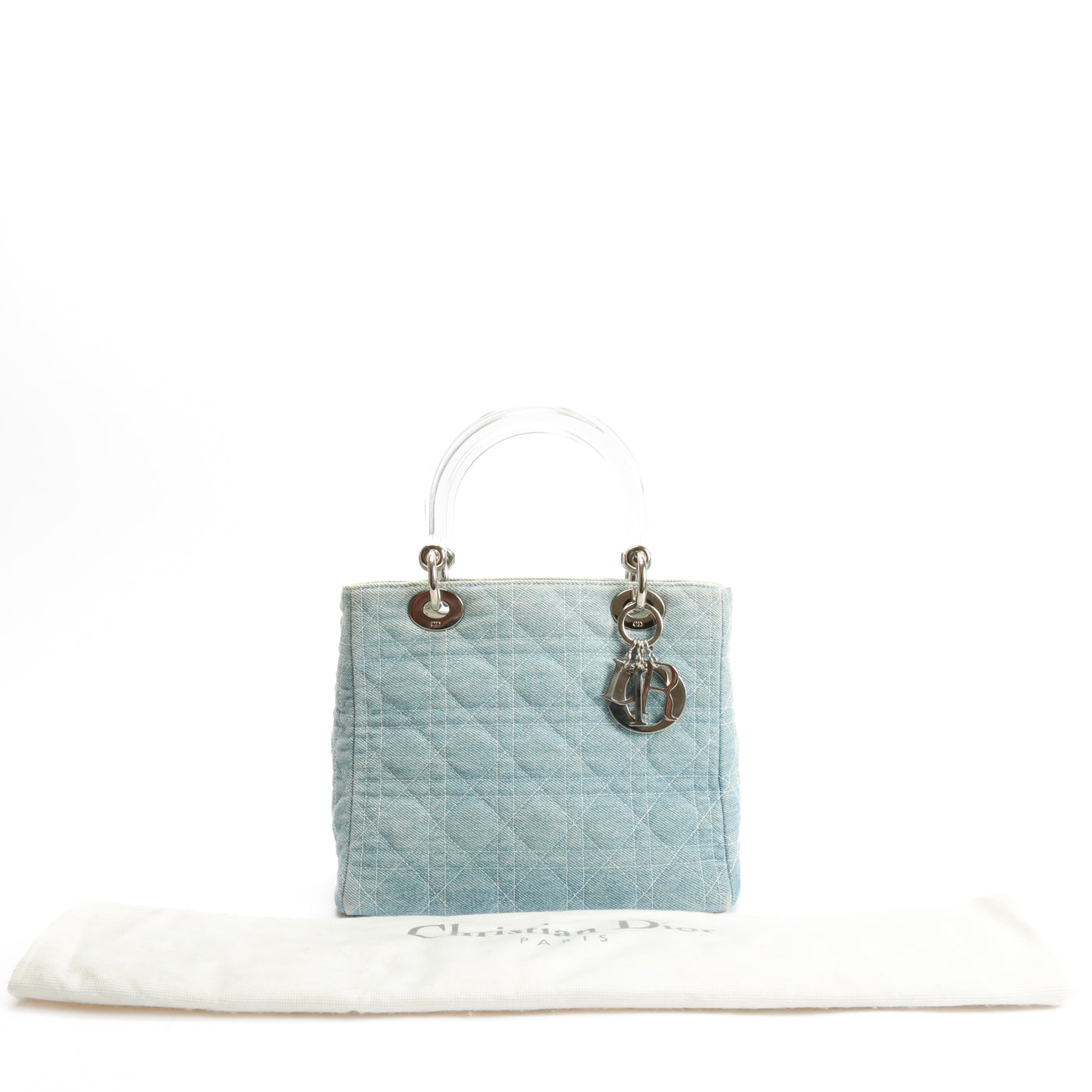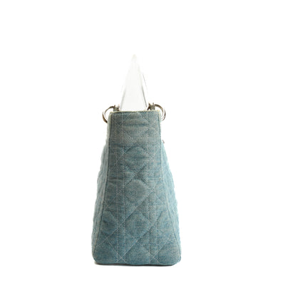 DIOR Vintage Medium Lady Dior w/Strap - Denim Cannage